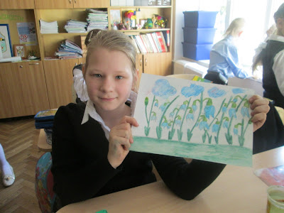 На уроке рисования третьеклассники рисовали самый весенний цветок - подснежник!